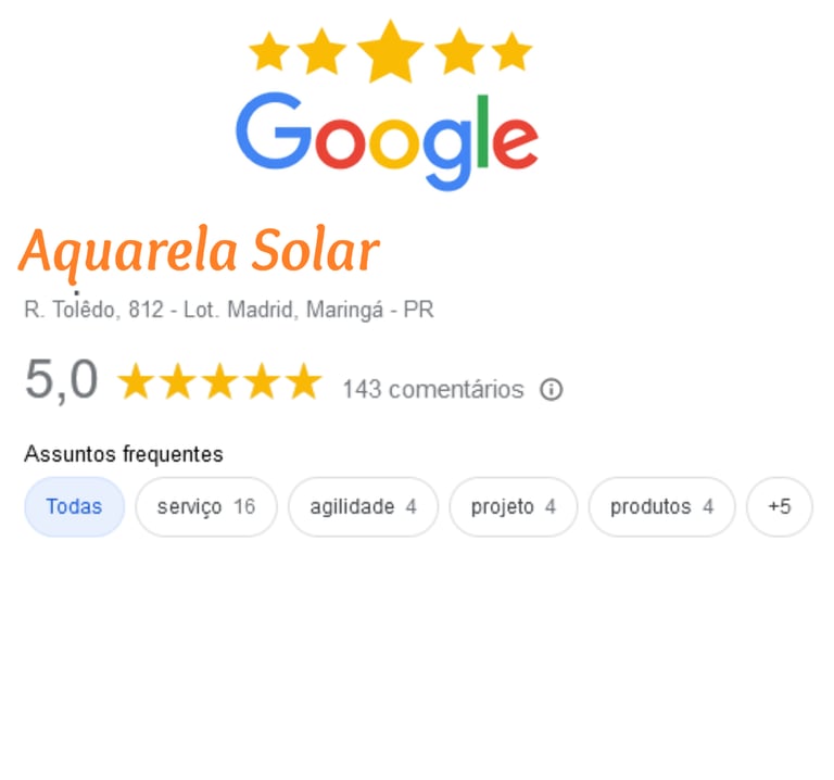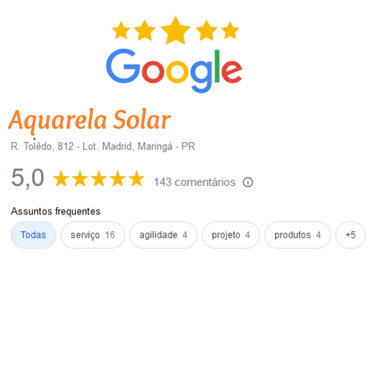 A Aquarela Solar está 5 anos no mercado, desde de 2020 atuando com excelência, por isso temos um alto índice de satisfação dos nossos clientes.
