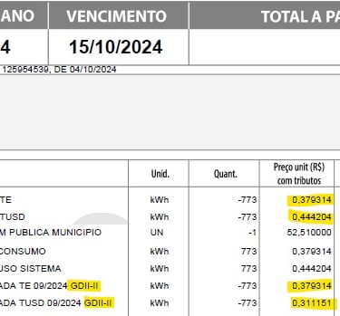 Além do custo de disponibilidade e FIO B, será cobrado: Iluminação Publica e as Bandeiras (Verde, Amarela, Vermelha ou Vermelha Patamar II).